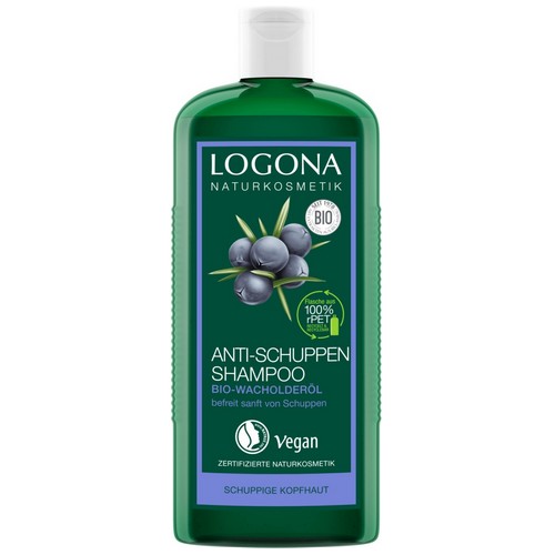 Das LOGONA ANTI-SCHUPPEN SHAMPOO pflegt trockene und zu Schuppen neigende Kopfhaut und hilft bei regelmäßiger Anwendung, die Neubildung von Schuppen zu verhindern. Die vegane Anti-Schuppen-Formel natürlichen Ursprungs mit Bio-Wacholderöl und milden Tensiden reinigt und verwöhnt die aus dem Gleichgewicht geratene Kopfhaut besonders sanft. Nachhaltige Verpackung: Flasche aus 100% rPET und Etikett aus 50% rPE - recycelt & recycelbar.