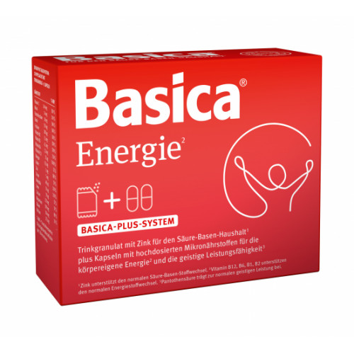 Basica® Energie im praktischen Doppelsachet kombiniert Trinkgranulat mit Kapseln: