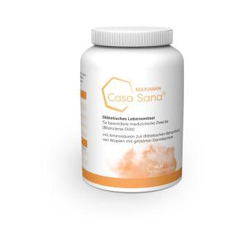 Casa Sana® MAXIAMIN enthält alle 8 essentiellen Aminosäuren in rein kristalliner Form. Das Verhältnis der einzelnen Aminosäuren zueinander ist optimal abgestimmt und entspricht dem menschlichen Aminosäuren-Grundmuster. Aminosäuren zählen zu den wichtigsten Schleimhautprotektoren. Sie unterstützen die natürliche Barrierefunktion der Darmschleimhaut, regulieren somit das darmassoziierte Immunsystem und bauen die Darmschleimhaut optimal auf. Casa Sana® MAXIAMIN eignet sich zur ergänzend bilanzierten Behandlung von Allergikern, wie Atopikern, Asthma-Patienten oder Nahrungsmittel-Allergikern.