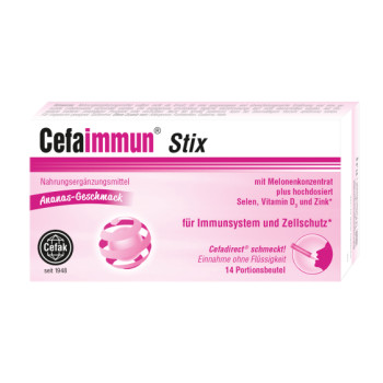 Cefaimmun® Stix unterstützen mit Selen, Vitamin D und Zink eine normale Funktion des Immunsystems. Selen und Zink tragen zudem dazu bei, die Zellen vor oxidativem Stress zu schützen.