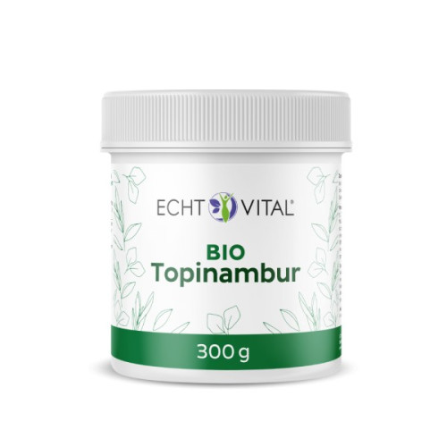 Bio Topinambur. Enthält 40% Inulin. Kalorienarm und mit wertvollen Ballaststoffen. Rohkostqualität. 1 Dose mit 300 g Pulver.