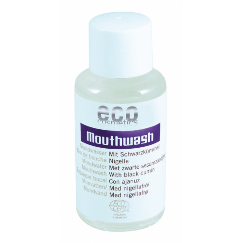 Das ECO Schwarzkümmel Mundwasser erfrischt natürlich, ganz ohne Pfefferminz. Es hilft beim Spülen Rückstände zu entfernen. Die Schwarzkümmelsamen werden im Orient schon seit uralten Zeiten als Gewürz und zur Stärkung des Immunsystems verwendet. Das enthaltene Carvon ist ideal für die Mundhygiene geeignet. Extrakte aus Bio Salbei, Bio Schwarzkümmel und Bio Echinacea sorgen für einen angenehmen und frischen Atem, ohne den Geschmack zu beeinträchtigen und helfen Zahnfleischblutungen vorzubeugen. Empfohlen bei Parodontose und Zahnfleischproblemen. Die Mundflora bleibt gesund und geschützt. Geeignet während homöopathischer Behandlung. Konzentrat, ca. 50% Vol. Alkohol