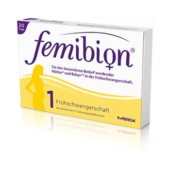Abgestimmt auf den besonderen Nährstoffbedarf ab Beginn der Schwangerschaft bis zum Ende des ersten Schwangerschaftsdrittels. Sorge für den besten Start deines Babys ins Leben, indem du dich bewusst ernährst. Femibion 1 ist speziell auf deine Bedürfnisse ab Beginn der Schwangerschaft bis zum Ende des ersten Schwangerschaftsdrittels abgestimmt. Empfohlen für den raschen Aufbau des Folat-Spiegels bis zum Ende der 12. Schwangerschaftswoche.