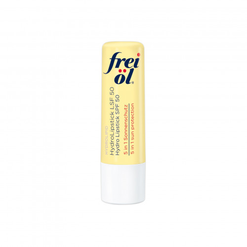 frei öl® HYDROLIPID HydroLipstick LSF 50 - 5 in 1 Sonnenschutz Der frei öl® HYDROLIPID HydroLipstick LSF 50 mit Hyaluron pflegt die Lippen und spendet Feuchtigkeit. Dank der Kombination der UVA/UVB-Lichtschutzfilter und hohem LSF 50 werden sensible Lippen optimal geschützt. Die Textur verleiht einen leichten Glanz und ein angenehmes Hautgefühl.