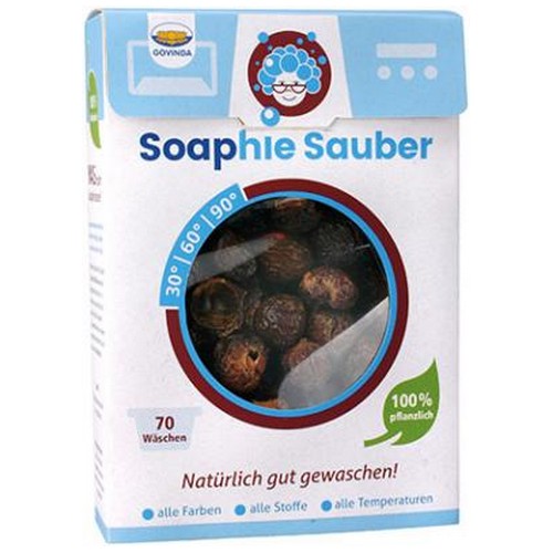 Soaphie Sauber ist die Waschnuss von Govinda und kommt aus dem fernen Indien, wo sie mit ihrer Familie an Bäumen lebt. Schon seit Urzeiten schätzen Menschen sie als Waschmittel für Körper, Haare und Wäsche. In Soaphies Schale steckt ihr Wundermittel – Saponin – welches ganz ähnlich wie Seife funktioniert. Sobald Soaphie mit Wasser in Kontakt kommt, gibt sie ihre natürliche Seife ab. Ein nachwachsender Rohstoff, perfekt für Allergiker und umweltbewusste Menschen! Gut zu deiner Haut, deinen Liebsten und der Erde.