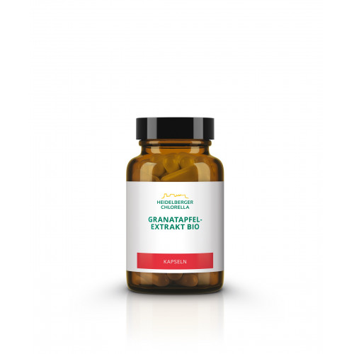 Bereits in der Antike wurden dem Granatapfel mythische Eigenschaften zugesprochen. Er galt als Symbol für Fruchtbarkeit und Wohlstand. Der Granat, ein roter Edelstein, hat sogar seinen Namen von der Frucht erhalten. Sowohl die Früchte als auch die Schale des Granatapfels enthalten Polyphenole wie das Tanin Punicalagin. Der in den Kapseln enthaltene Granatapfel-Extrakt stammt aus biologisch zertifiziertem Anbau aus Spanien. Seine charakteristisch warme Rotfärbung erlangt der Extrakt durch seine Flavonoide
