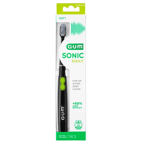 Gute tägliche Mundpflege ist wichtig, auch wenn Sie gesunde Zähne und gesundes Zahnfleisch haben. Beugen Sie Problemen der Mundgesundheit mit der GUM SONIC DAILY Schallzahnbürste vor. Diese innovative Zahnbürste vibriert mit 12.000 Schwingungen/Minute um Ihre Zähne sanft zu reinigen und Ihr Zahnfleisch zu stimulieren. Durch die extra Kraft der Vibration werden bessere Ergebnisse als mit einer herkömmlichen Handzahnbürste erreicht.