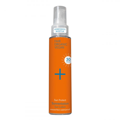 Die wasserfeste Sun Protect Sonnenlotion für alle Hauttypen bietet einen sicheren natürlichen Breitband-Sonnenschutz mit Lichtschutzfaktor 30 und besten Bio-Zutaten.