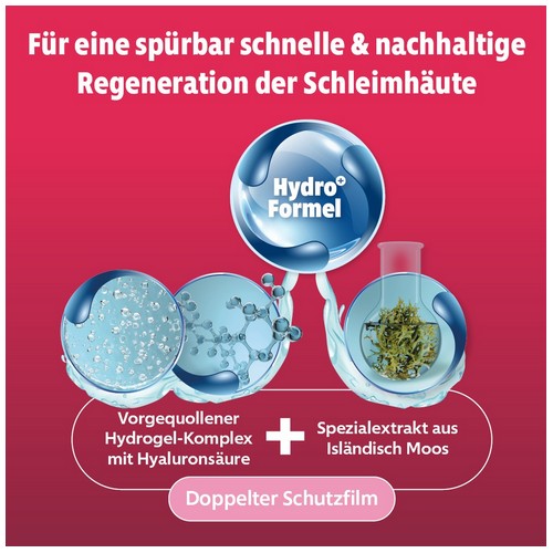 An den Schleimhäuten sorgt die Hyaluronsäure mit dem Hydrogel-Komplex für eine intensive Befeuchtung und damit wird die Regeneration nachhaltig unterstützt.