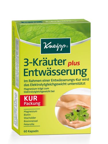 Brennnessel, Petersilie und Wacholderbeeren sind traditionelle Pflanzen aus dem Erfahrungsschatz von Sebastian Kneipp. Eine Kur mit Kneipp® 3-Kräuter Entwässerung kann vor allem in Verbindung mit der Kneipp‘schen Lebensweise – ausgewogene Ernährung, reichlich Flüssigkeitszufuhr, viel Bewegung – auf natürliche Weise eine Entwässerung unterstützen. Im Rahmen einer Entwässerungs-Kur wird das Elektrolytgleichgewicht unterstützt. Magnesium trägt zum Elektrolytgleichgewicht bei.