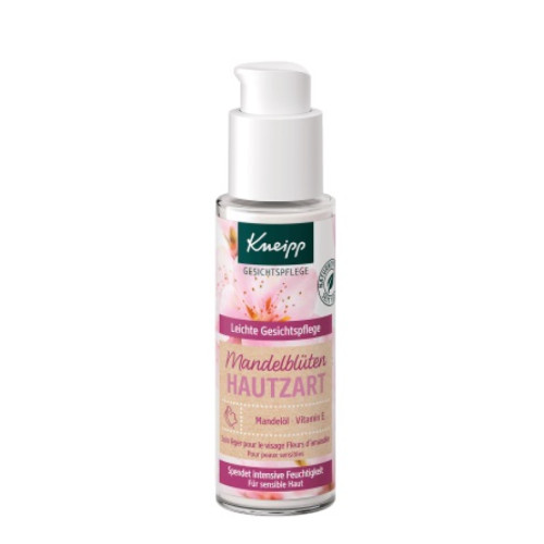 Die Kneipp® Leichte Gesichtspflege Mandelblüten Hautzart mit hochwertigem Mandelöl wurde speziell für die Bedürfnisse sensibler Haut entwickelt und versorgt diese langanhaltend mit Feuchtigkeit. Die sanfte Pflege schützt, wirkt hautberuhigend und unterstützt die natürliche Regeneration der Haut.