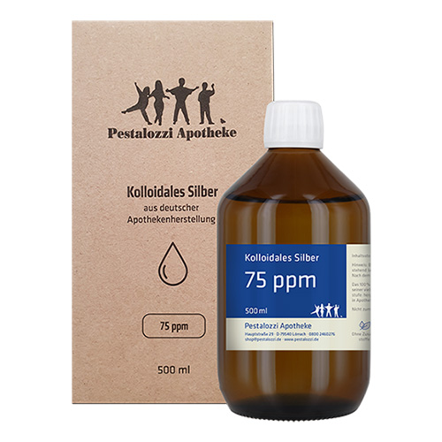 Das kolloidale Silber 75 ppm wird mit hochreinem destillierten Wasser unter qualifizierten Laborbedingungen frisch hergestellt und in einer dunklen Glasflasche geliefert. Die Herstellung erfolgt in der Apotheke unter überwachten Laborbedingungen. Das kolloidale Silber wird auf elektrolytischem Wege mit Hilfe eines entsprechenden Generators hergestellt. Dabei werden aus 99,99% reinem Silber kleinste Partikel gebildet und in destilliertem Wasser verteilt. Wir arbeiten dabei ohne Einsatz von Zusatzstoffen. Bitte beachten Sie: Kolloidales Silber ist kein Arzneimittel und daher auch ohne Angabe einer Indikation. Aus rechtlichen Gründen bieten wir daher das kolloidale Silber nur für technische Zwecke an. Nicht zum Einnehmen.