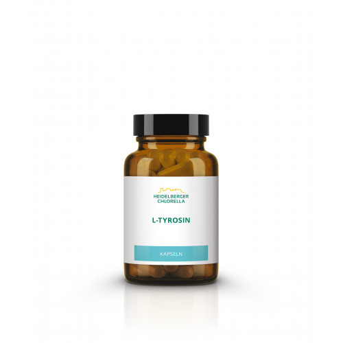Tyrosin ist eine nichtessentielle proteinogene Aminosäure. Sie wird im Körper mithilfe unterschiedlicher Enzyme für die Synthese zahlreicher Hormone und Neutransmitter verwendet. Dazu zählen beispielsweise die Schilddrüsenhormone Triiodthyronin und Thyroxin, das Hautpigment Melanin sowie die Hormone Noradrenalin und Adrenalin, die wir dringend für das Erbringen von Höchstleistungen benötigen. Die Kapseln enthalten GMO-freies Tyrosin, das mittels Fermentation aus Mais gewonnen wurde.