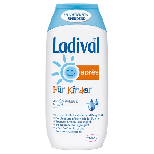 Nach dem Sonnenbaden die Haut sanft reinigen und gut abtrocknen. Anschließend die Après Pflege Milch auf die sonnengereizte Haut auftragen und einziehen lassen. Bei Bedarf wiederholen. Als passenden Sonnenschutz für die empfindliche Kinder- und Babyhaut oder bei Neurodermitis empfehlen wir die Serie Ladival® Für Kinder Sonnenschutz (als Milch, Creme oder Spray). Vor Gebrauch schütteln.