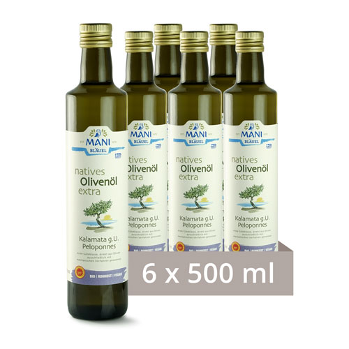 Das besondere Öl aus der Region Kalamata mit geschützter Herkunftsbezeichnung.Das frische, mild fruchtige, sortenreine Bio-Olivenöl nativ extra zeichnet sich durch ein angenehmes Aroma von Kräutern und Wildblüten und eine leicht pikante Würze aus. Was dieses MANI Olivenöl so kostbar macht, ist die in der Mani am mittleren Finger des Peloponnes heimische Koroneiki Olive – schonend geerntet und ausschließlich mechanisch kalt extrahiert. Die autochtone Olivensorte, das vom nahen Meer geprägte Klima und die mineralischen Böden geben dem MANI Olivenöl seinen einzigartigen Geschmack. 2012 vom Feinschmecker als eines der besten unter 250 Olivenölen ausgezeichnet!