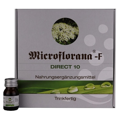 Es empfiehlt sich Microflorana(R) -F Direct 10 kurz vor den Mahlzeiten unverdünnt zu trinken, es kann je nach Geschmack aber auch mit stillem Wasser oder Fruchtsaft gemischt werden. Bitte keine heißen Getränke verwenden. Je nach Bedarf 1 bis 4 x 25 ml Microflorana(R) -F Direct 10 täglich trinken.