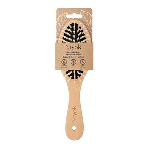 Die Niyok Holz-Haarbürste ist mit ihren Holzborsten perfekt für alle Haartypen und die tägliche Anwendung geeignet.