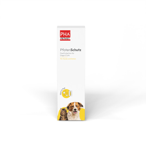 PHA PfotenSchutz zieht schnell ein und schützt bei gezielter Anwendung vor übermäßiger Reizung, mechanisch bedingten kleinen Verletzungen und Auswirkungen von Nässe, Kälte und Hitze. Die natürliche Elastizität und Belastbarkeit von Haut und Ballen wird wiederhergestellt.