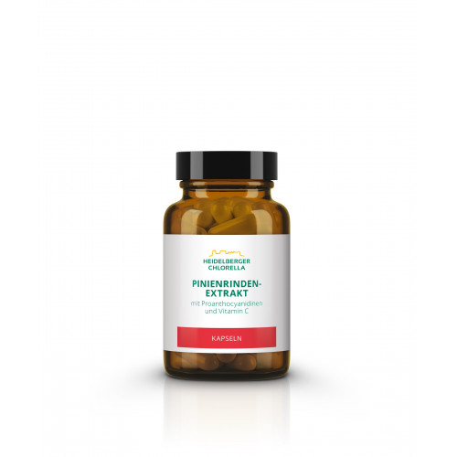 Die Kapseln kombinieren Pinienrindenextrakt sinnvoll mit hochwertigem Vitamin C als Ester-C®. Der Mindestanteil an Proanthocyanidinen liegt bei 95 Prozent.