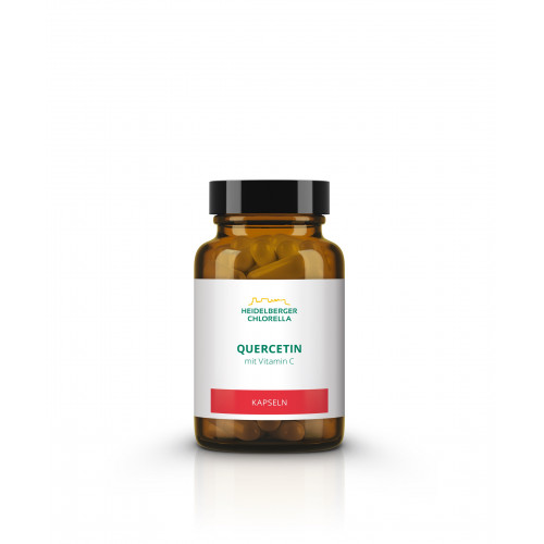 Quercetin ist ein leuchtend gelber Pflanzenstoff der zur Gruppe der Flavonoide und damit zu den Polyphenolen gehört. Er kommt bei vielen Pflanzen insbesondere in deren Schale vor. Besonders bekannt für ihren Quercetin-Gehalt ist die Eiche. Aus ihrer lateinischen Bezeichnung,quercus, wurde auch der Name des Pflanzenstoffs abgeleitet. Die Kapseln enthalten hochreines Quercetin natürlichen Ursprungs. Das Flavonoid wird aus den gelblich-weißen Blüten und Knospen des Japanischen Schnurbaums, sophora japonica, gewonnen. Erst wenn der