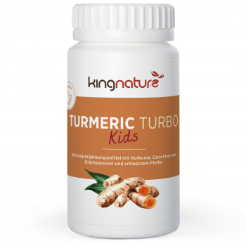 - Turmeric Turbo Kids – 120 vegane Kapseln mit Kurkuma, Catechinen aus Grünteepulver und schwarzem Pfeffer.