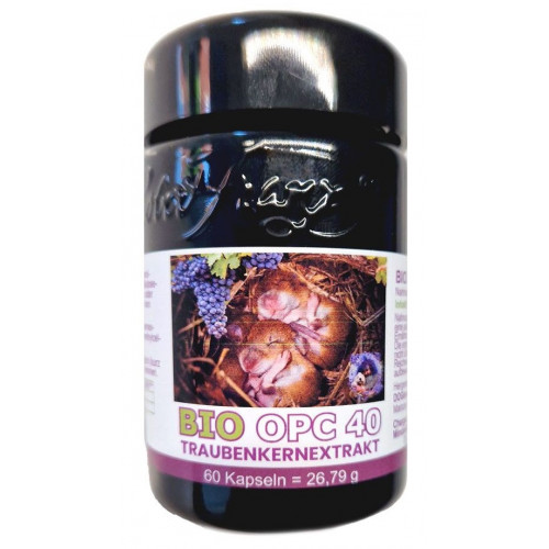 Hochwertiges Bio-Traubenkern-Polyphenolpulver in pflanzlichen, vegetarischen Zellulosekapseln. OPC 40 enthält einen Anteil von 40% OPC.