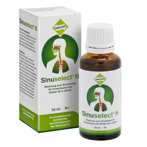 Sinuselect N ist ein gut verträgliches natürliches Arzneimittel zur Behandlung von akuten und chronischen Entzündungen der Nasenhöhle und Nasennebenhöhlen (Sinusitis). Die Sinusitis kann aus einem einfachen Schnupfen entstehen und von Schwindel, Übelkeit und Dauerkopfschmerz (Stirnhöhlenkatarrh) begleitet sein. Sinuselect N beseitigt die Schleimhautschwellung, die verschleimten Nebenhöhlen werden entleert, der überflüssige Schleim wird hinausbefördert, ohne die normale Schleimproduktion negativ zu beeinflussen. Auch die Entzündungen der Nebenhöhlen klingen rasch ab. Ein entzündungshemmender Effekt mindert das Risiko einer Neuerkrankung.
