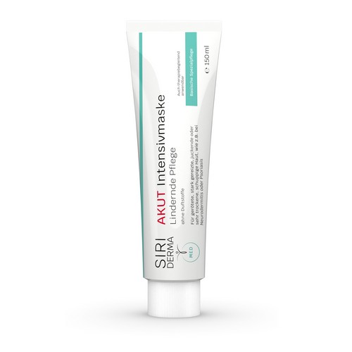 Die SIRIDERMA AKUT Intensivmaske beruhigt gerötete, stark gereizte, juckende oder sehr trockene, schuppige Haut und lindert Juckreiz. Die einzigartige SIRIDERMA Basen-Balance-Formel neutralisiert überschüssige Säuren auf der Haut, unterstützt das gesunde Säure-Basen-Gleichgewicht der Haut und fördert die Hauterneuerung. Sie kann in Kombination mit einer der SIRIDERMA Intensivcremes oder allein angewendet werden. Die Maske ist für Erwachsene sowie Kinder und Babys geeignet.