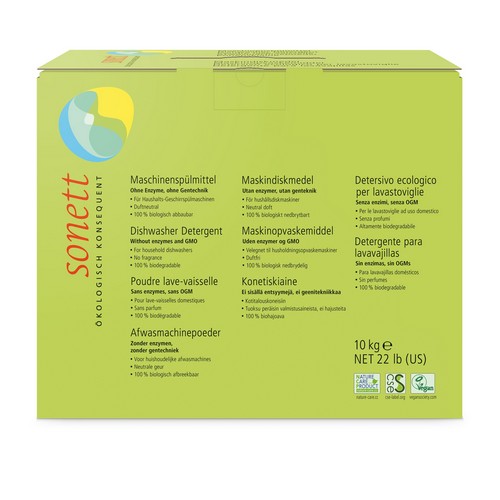 Bei dem Sonett Maschinenspülmittel wird auf aggressive chlorhaltige Bleichmittel, Phosphate, synthetische Silberschutzmittel, Enzyme etc. verzichtet. Trotzdem bewältigt dieses Spülmittel auch starke Verschmutzungen ausgezeichnet.