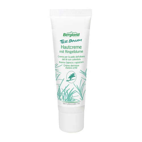Die Teebaum Hautcreme von Bergland ist eine Kobination mit Teebaum-Öl und Ringelblumenextrakt. Gereizte und irritierte Haut wird beruhigt und gleichzeitig wird dir natürliche Hautfunktion aktiviert.