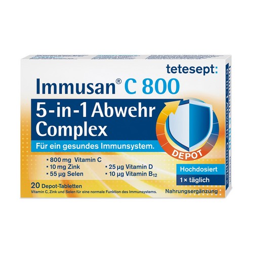 tetesept Immusan® C 800 Depot Complex Tabletten enthalten für die Unterstützung der Abwehrkräfte relevanten Nährstoffe in hoher Dosierung: