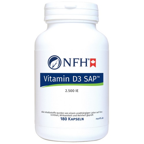 Vitamin D3 SAPTM ist ein Nahrungsergänzungsmittel auf der Basis von Vitamin D3 (Cholecalciferol) mit 62,5 mcg (2.500 IU) pro Kapsel.
